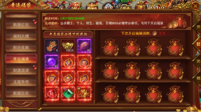 击杀BOSS获得幸运硬币,可开启福袋