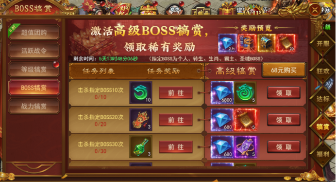 活动期间完成条件即可挑战福利BOSS,越高级BOSS掉落奖励越好