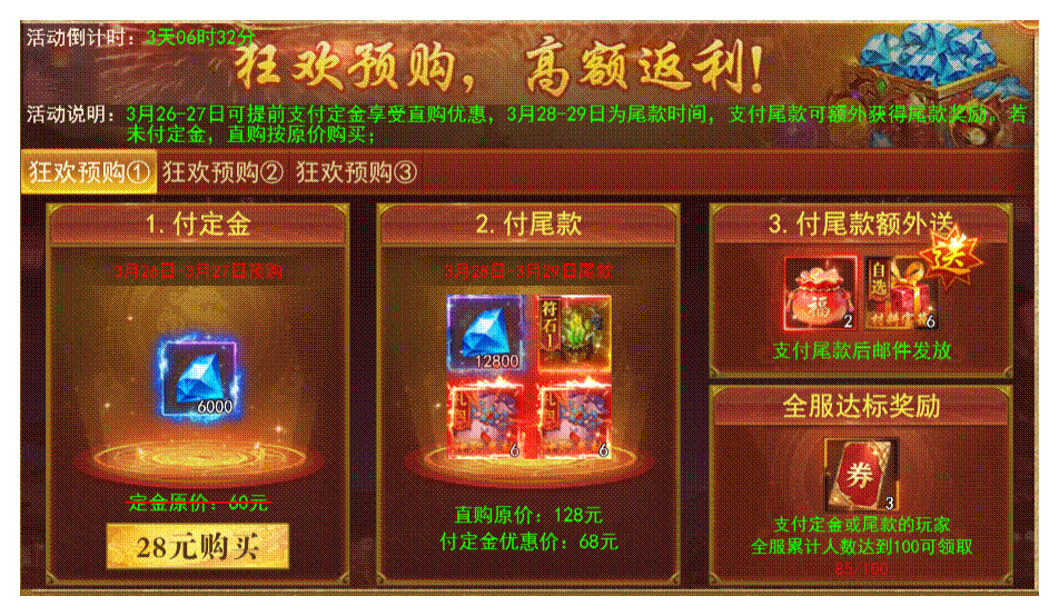 活动前两日付定金享优惠,活动后两日结尾款领大奖!