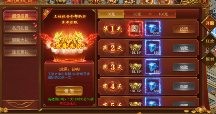 四:超值犒赏(开服第六天开启)
