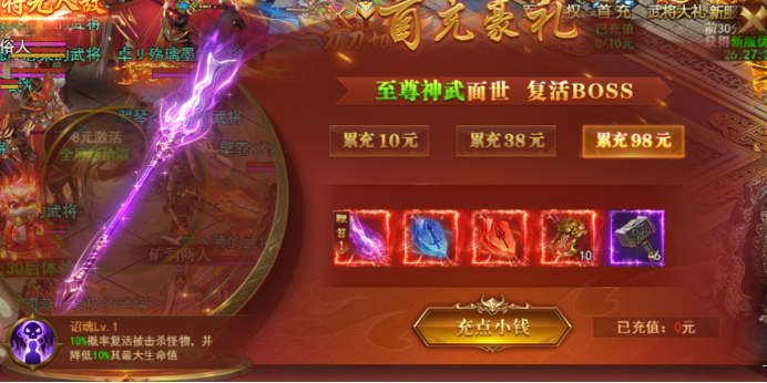 一、新服开服首充,豪华大礼,首充即送