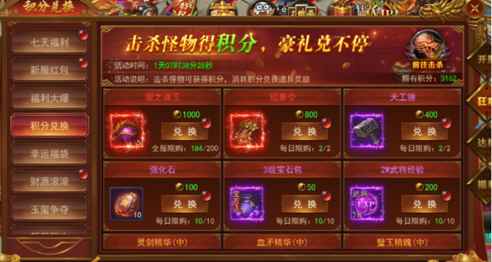 击杀怪物可以获得积分,消耗积分兑换道具奖励