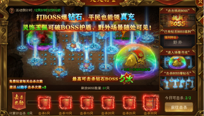 击杀指定BOSS即可领取真实充值红包