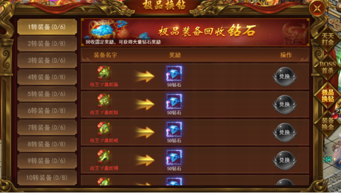击杀BOSS获得极品装备即可回收大量钻石奖励