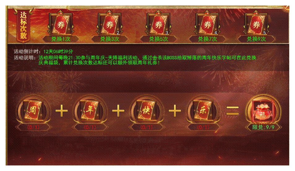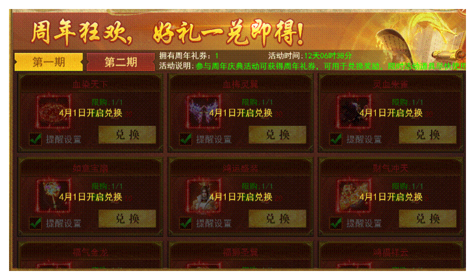 周年活动限时兑换,海量稀有道具、时装幻化、极品装备等你来拿!
