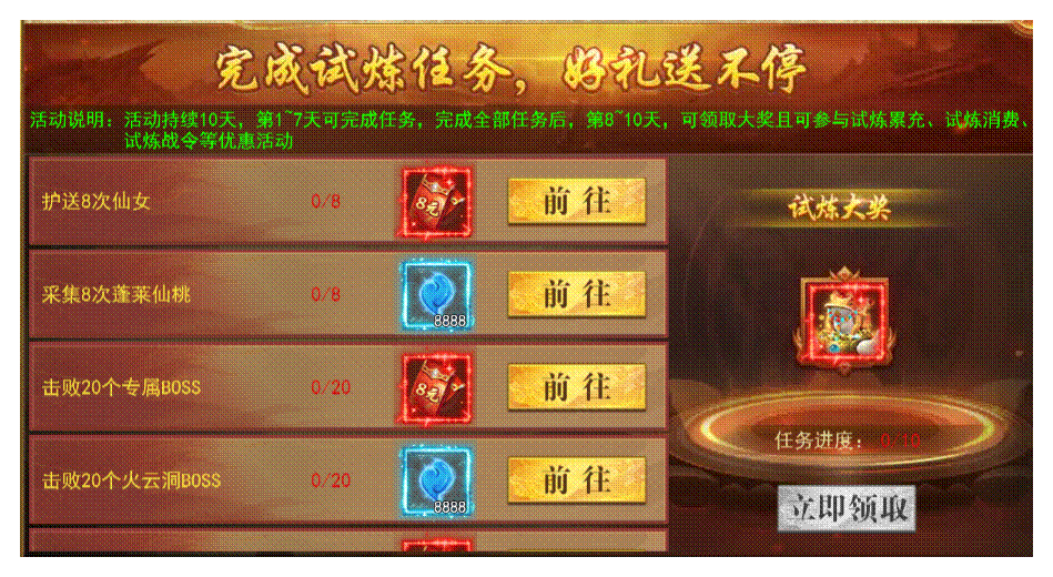 每日登录游戏即可领取福利奖励一份,累计每日限购达标还可获得周年礼卷、活动称号等超值大奖!