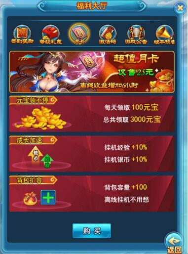4. 挂机几乎是最普通最慢的升级,但是可持续性很高,所以月卡这重要性也可见一斑~月卡可以提升10%的经验,日积月累四舍五入那就是几个亿啊,玩这游戏不买张月卡怎么玩~?