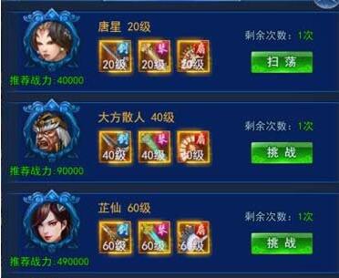 这里就是单挑BOSS的界面了,根据BOSS的等级选择自己能打过的去挑战吧。胜利后能获得的装备就在这里了。