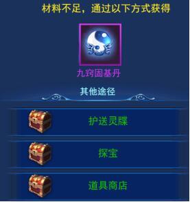 而所谓的材料九窍固基丹,只有在护送灵牒,探宝,道具商店中才可以获得。如果你喜欢这个玩法,不妨多去探宝和护送灵牒吧。