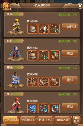 三国计H5中的个人boss怎么打?三国计H5中的个人BOSS是boss系统中的一个挑战副本,玩家可以在这里挑战强力的个人BOSS来获得奖励,下面就具体的来介绍下个人boss玩法吧。