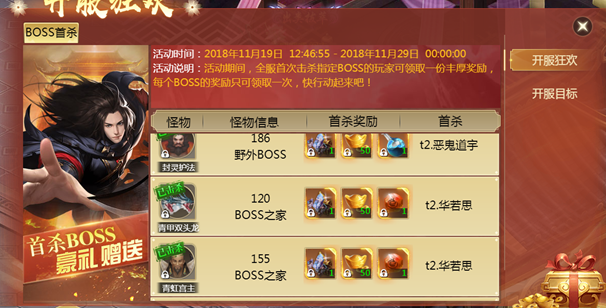 多重组合活动庆开服:家族争霸,BOSS首杀
