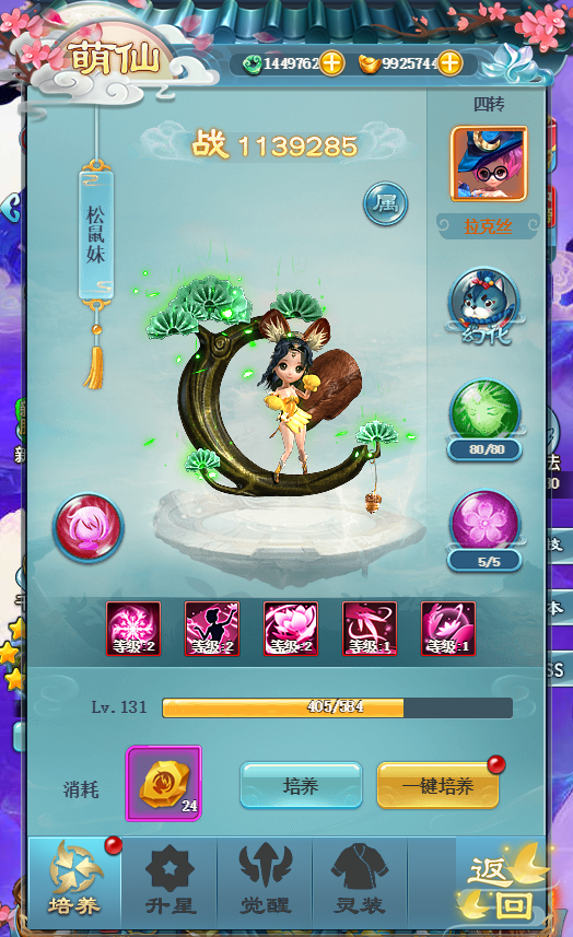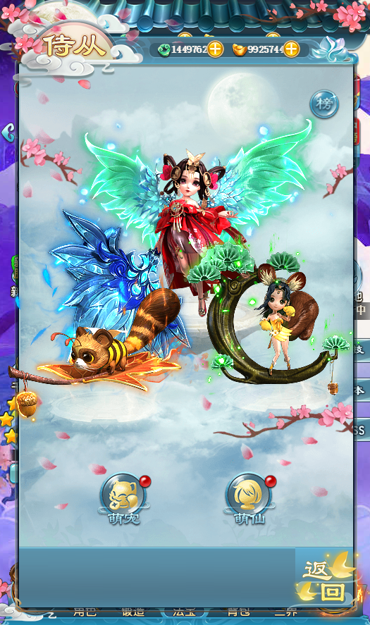 接下来就是美丽动人的萌仙啦,萌仙界面同样在侍从界面点击萌仙打开。萌仙和萌宠一样,可以进行培养、幻化、吞噬神炼丹和资质丹、觉醒等操作,萌仙和萌宠都能跟随主角一起并肩作战哟~