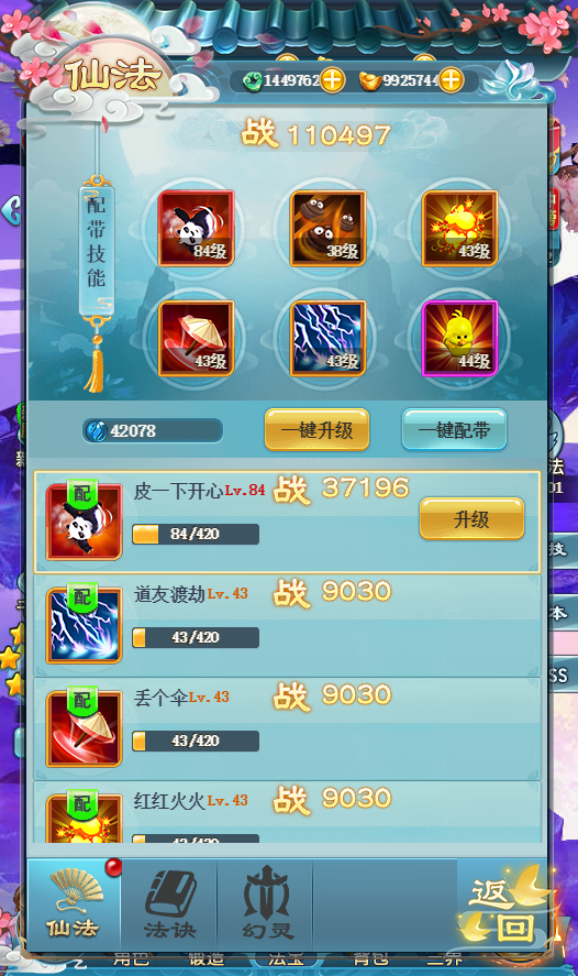 法诀,分为地煞、天罡、星宿、造化4种品质,通过收集和升级法诀提高道行值,每种不同品质的法诀能增加额外的战斗属性
