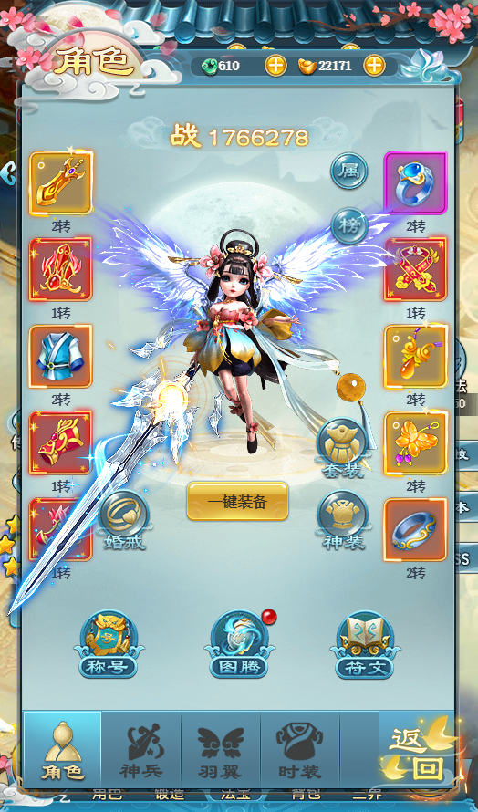 佩戴,统可激活不同的神兵皮肤让仙友的角色佩戴在身上,可以选择不同的皮肤佩戴