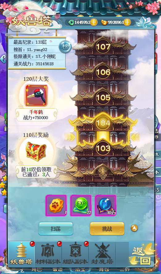 《凡人飞仙》中有很多好玩副本,妖兽塔、材料副本、组队副本、封魔塔,这些副本不仅有趣,还能获得大量的道具材料奖励。组队副本还能提前和小伙伴约好一起打boss呢这些副本都可以通过界面右方的副本按钮