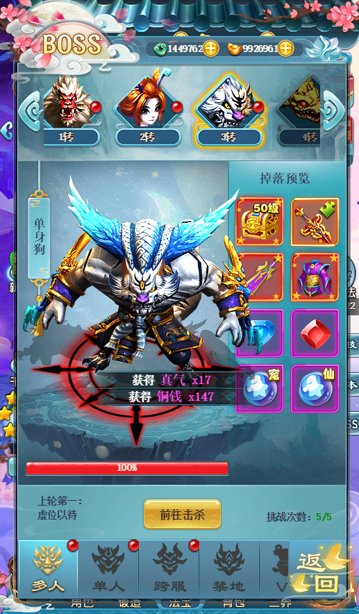 《少年封神》中的BOSS携带着大量稀有的装备和道具,点击主界面右边的BOSS按钮,即可挑战查看各类BOSS,单人BOSS、多人BOSS、跨服BOSS、万妖禁地、VIP专属boss。不同的BOSS玩法将会获得不同的装备道具哦!
