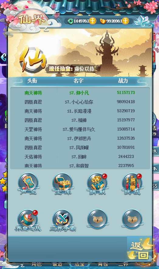 法宝从主界面最大的按钮进入,点击即可进入法宝按钮