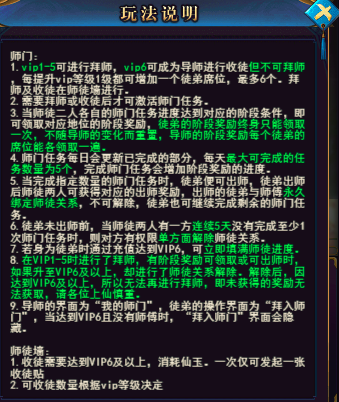 A:V1-V5可拜师,V6只能收徒不能拜师,收徒需耗费30仙玉