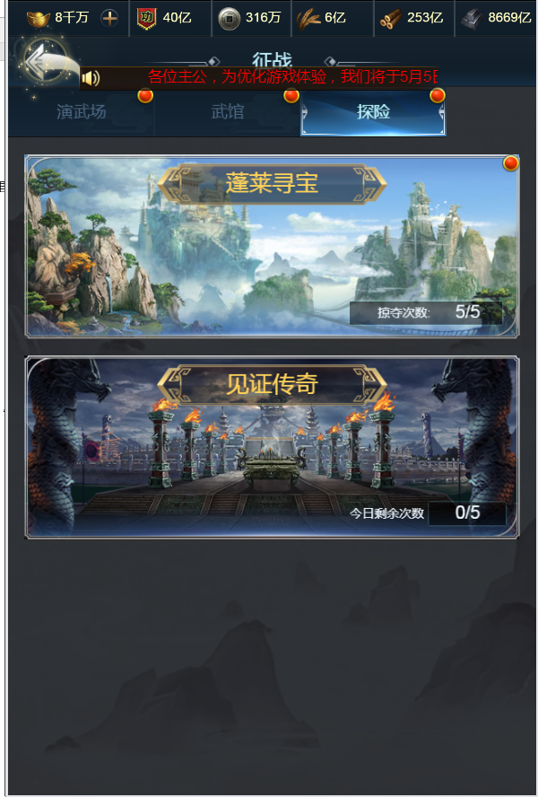 “见证传奇”的玩法在征战里的探险页面。目前来说,探险页面的两个玩法都是福利玩法,建议改成探宝好吧!