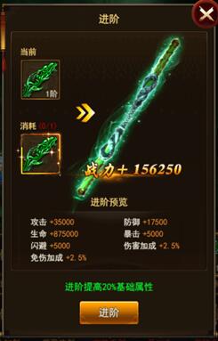 神兵消耗同一激活卡进行升级,提升20%属性加成 仅活动投放
