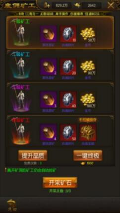 勇士每天有三次挖矿的机会。进入矿洞后,勇士可以选择升级自己的矿工,每天有三次免费机会。如果升级成终极矿工,挖矿结束后则必定获得一个兵魂突破宝箱奖励!