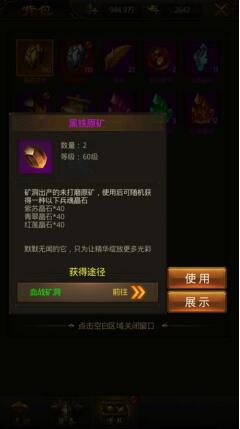挖矿获取黑铁原矿后,打开黑铁原矿,便可获得随机的兵魂晶石。