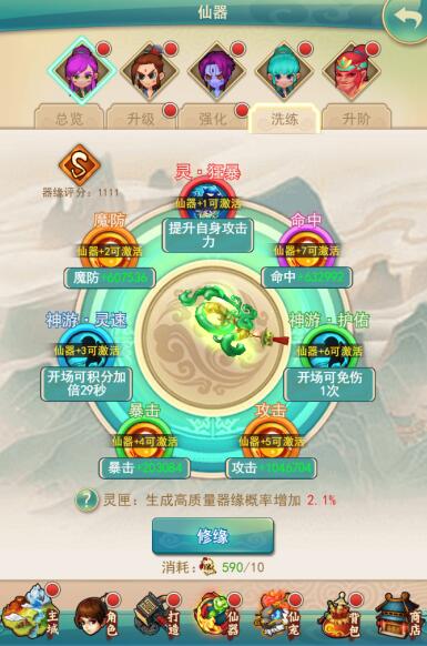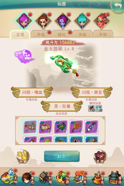 不同仙器均有自己的灵性,因为灵性的存在,仙器也有自己的专属技能,帮助玩家除魔卫道,平定四方。
