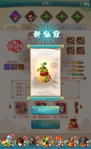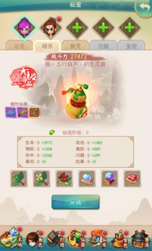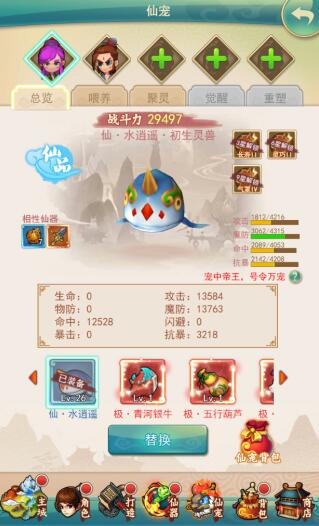 通过副本炼妖洞天获取材料,进行喂养。仙宠品级的提升可以带来大量的战力提升。