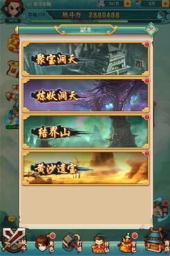 人物到达5级后,会开启副本聚宝洞天,通过进入副本击杀魔将可以获得给力的装备。随着等级的提高还会开启更高级的装备副本。