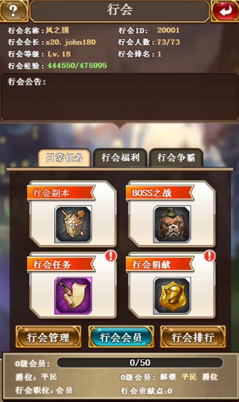 行会旗帜可以加成全体成员的属性战斗力,行会等级越高,旗帜的属性增幅越强,提高行会爵位则可以得到额外的旗帜属性加成。