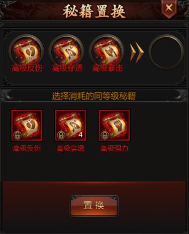 秘籍等级分中高级,任意消耗三本同级别的秘籍,可随生成一本新的秘籍