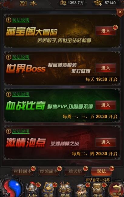 在游戏玩法上,游戏也是经典再现。前期提供了玩家大量剧情主线任务,玩家可以直接通过点击主线任务,来提升等级和推进游戏整体进度,游戏的任务以打怪和对话为主,自动寻路并完成任务。到了游戏后期,传奇里经典的玩法都将游戏里一一展现,比如比奇城、盟重省、沙巴克,又比如尸王、白野猪、沃玛教主,屠龙刀、龙纹剑、嗜魂法杖,一样都不少。