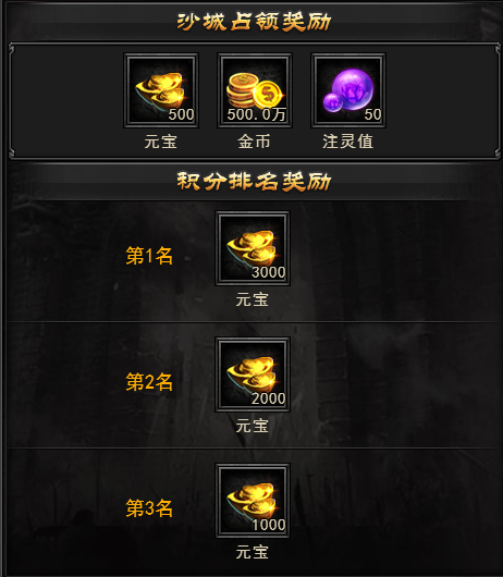 4、占领沙城的帮会帮众每天均可领取占沙奖励。