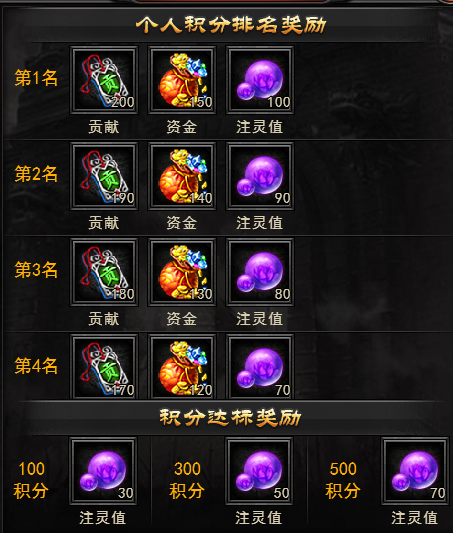 2、帮会总积分排名前3名的帮会将会获得元宝奖励。
