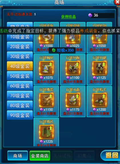 其次在副本-无尽试炼中,玩家可以通过不断挑战无尽的副本或则分解低等级橙装获取魔化结晶,然后通过橙装商城用结晶兑换橙装,这种方式只有刷刷刷就可以将自己的装备都变成金光闪闪!