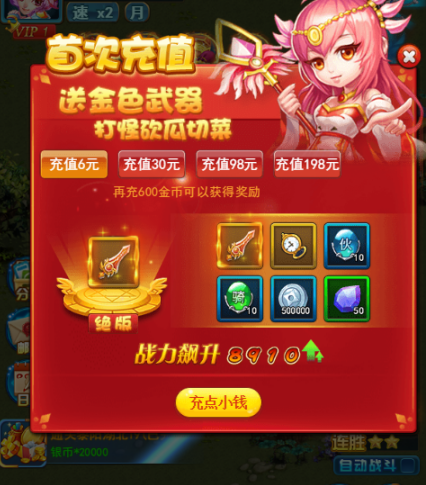 有点小钱的玩家只需要充值6元首冲,便可以获得前期最具性价比的橙色武器!
