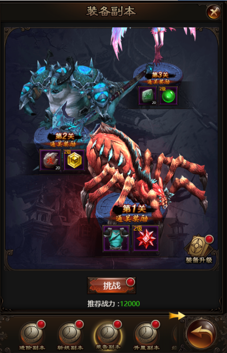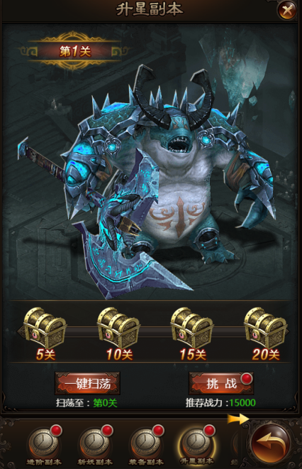 • 升星副本每4个小关就会出现一个首领,挑战首领成功会获得大量的装备升星石。