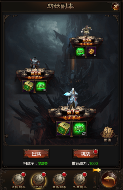 • 斩妖除魔玩法是一个挑战魔头的玩法,每2个小关就会出现一个魔头,首次斩去魔头会获得对应的图鉴用以在图鉴玩法中激活属性加成。