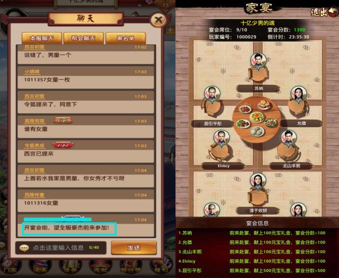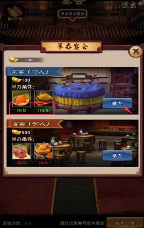 现在就可以开始家宴,大摆筵席,招揽全服豪杰前来参加啦