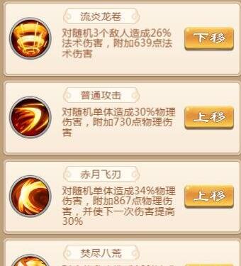 然后就是这个排列的问题了。其实也不是很难,主要是赤月飞刃这个技能会让下次伤害提高30%。所以在赤月飞刃下面一定要放一个爆发高的技能。