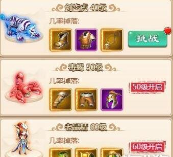 这个就是封妖副本的界面了,可以看到不同的BOSS等级也不一样,掉落1东西等级也不一样。