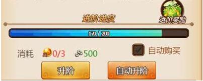这个就是进阶的界面了,升阶需要消耗银币和神兵进阶丹。然后点击升阶或者自动升阶都可以。