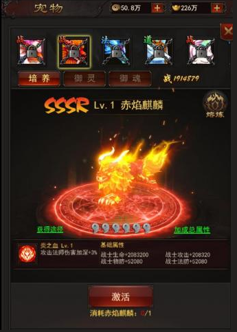 1.玩家可以同时激活多个灵兽,但只可以幻化显示一个,所有已激活灵兽的属性叠加到当前幻化的灵兽身上。