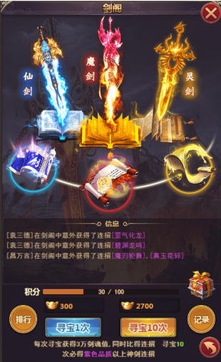 目前《修真界》中连招只能通过“功法阁”来抽取,玩家可通过消耗“连招令”或元宝来“寻宝”,寻宝可获得剑魂和随机品质的连招。寻宝十次必得一本紫色品质连招,而首次十连还会赠送一本橙色品质连招!各位修士,快来抽取更加强力的连招吧!