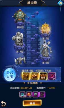 通天塔是一次性获得大量经验的好地方,如果想要让你的等级一飞冲天是最好的选择。但是每一层都有着实力强劲的怪物把守,建议有一定的实力再去进行挑战,一次性通关很多层就可以让你的等级像坐火箭一样的上升。