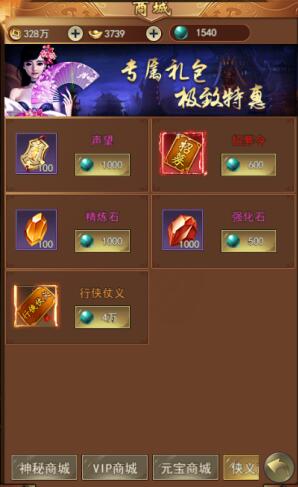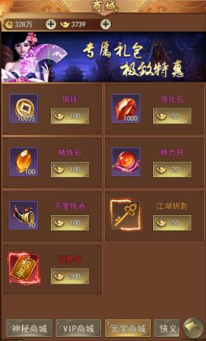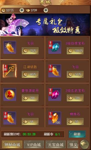 神秘商城 通过铜钱或者元宝购买折扣道具/装备