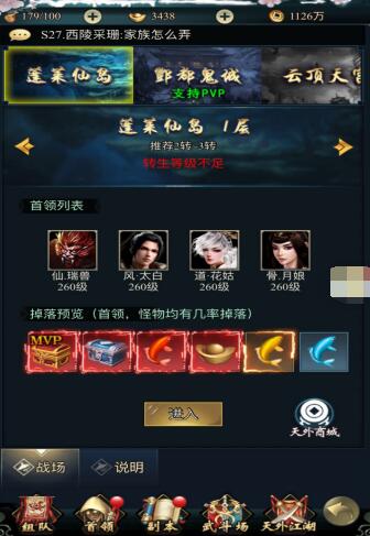 里面有组队,首领,副本,武斗场,天外江湖
