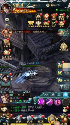 说明 主线推图为核心放置玩法,玩家将自动刷怪,经验、铜钱产出丰富