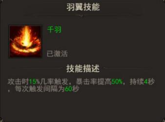 1. 消耗金币或羽毛可提升羽翼星级,获得属性加成,越高阶的羽翼升级需要的羽毛越多;
