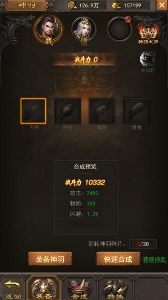 2.神羽装备可以通过击杀神羽BOSS获得或者使用神羽碎片进行合成。